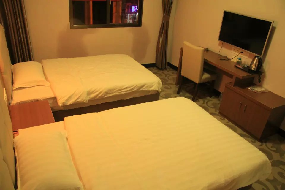 主打简约舒适,提供两张1.2-1.35米宽床铺(偏硬)。外窗,进门处设茶吧区,独立卫生间干湿一体,配有洗漱用品和脏衣篓。房间还配有高清电视、无线WIFI,感应灯、自然空气净化器和桌椅休息区,适合商务、度假乘凉带孩子的旅客。