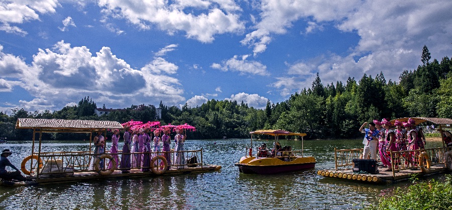 游玩攻略:建议游玩时间 1 - 2 小时。白天可以租一艘小船,泛舟湖上,轻轻划动船桨,感受湖水的清凉与微风的轻抚,近距离欣赏湖光山色。喜欢垂钓的朋友,可带上渔具,在湖边找一处安静的角落,享受垂钓的乐趣,说不定还能收获肥美的鲜鱼。沿着湖边步道散步也是不错的选择,一边漫步,一边用相机记录下美丽的风景。晚上,月亮湖会有精彩的夜演活动,欣赏土家儿女带来的歌舞表演,感受浓郁的民族风情。此外,运气好的话,还能听到土家歌手在竹筏上对唱山歌,那悠扬的歌声在湖面上回荡,为你的旅程增添一份别样的浪漫。