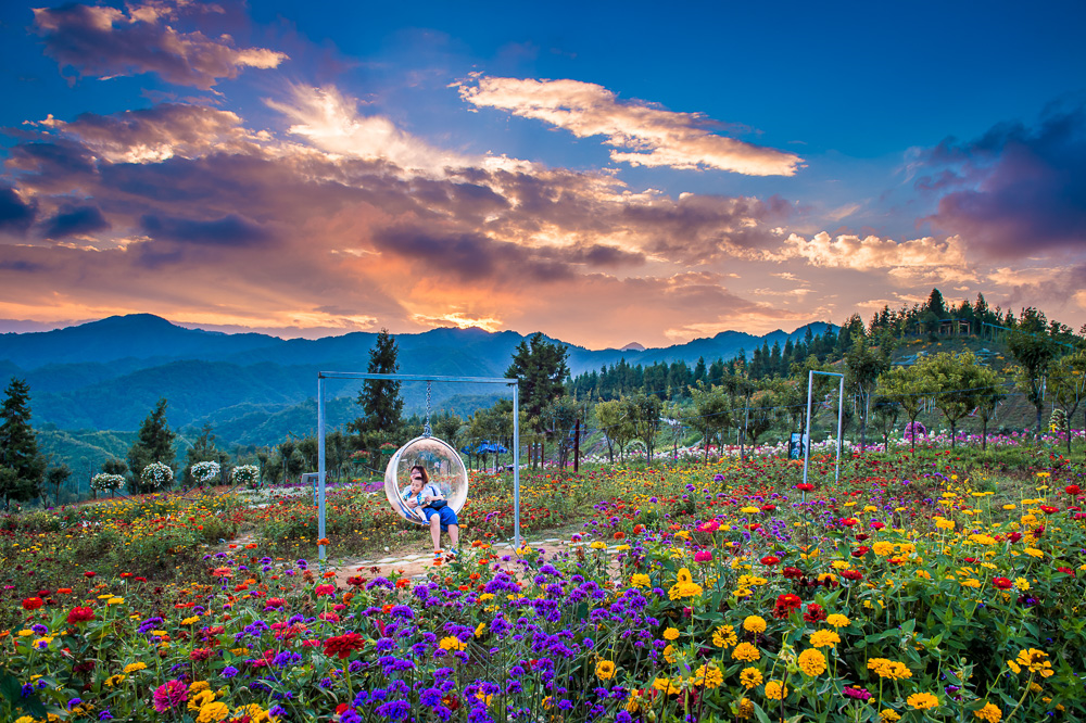 景点介绍:云中花都景区坐落于石柱县冷水镇八龙村,横卧在七曜山主山脉,贯通川鄂,承接湘黔,位置得天独厚。景区海拔约 1500 米,森林覆盖率超 90%,夏季均温仅 21 摄氏度,是绝佳的避暑胜地。这里原是一片原始森林区域,自然资源极为丰富。景区占地面积达 3000 亩,在建设过程中,巧妙利用原有森林屏障,结合起伏山峦与蜿蜒溪水,精心打造出高山观赏花卉园 500 亩,形成了 “时时花开、处处果香” 的迷人景象。花卉观赏基地分为七园一场一宫,有栽种 80 多个品种月季的现代玫瑰园,以土家族织锦为灵感、拥有 100 多个品种的天竺牡丹园,由 180 多种草花构成的百花春色园,象征热情活力的太阳花丘,400 米长种植各类杜鹃的杜鹃长廊,能重现 “洛阳花开满山头” 壮丽景象的洛阳花梯,以及包含五行特色花卉的五色花坡,还有婚庆广场和玫瑰迷宫等特色区域。除了繁花似锦的花卉景观,景区还设有丰富多样的游乐设施。全国最长、最刺激且观光体验效果最佳的 3D 空中漂流,让游客在花海上空感受风驰电掣的快感;花都飞舞(滑索)、步步惊心、森林穿越、花都秋千、云霄滑车等项目,为追求刺激的游客提供了挑战自我的机会。此外,景区配套设施完善,拥有生态步道 15 公里,生态停车位 2400 个,还有云中归巢度假帐篷酒店、林下氧吧屋、星空帐篷等共计 1000 余顶帐篷,可满足 3000 - 4000 人夜宿。美食城内,簸箕宴、花都吊锅、江湖菜、烧烤、大排档等各类名特优菜小吃应有尽有,更有花魁巡游、鱼灯汉服巡游、花都不倒翁表演等精彩活动,让游客尽享视觉与味觉的双重盛宴。